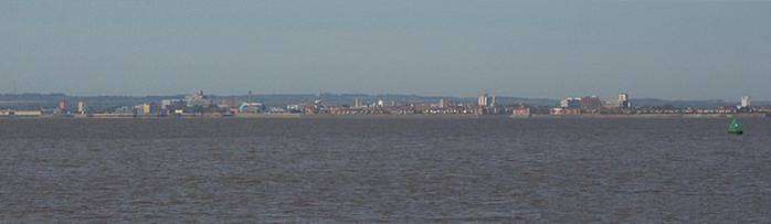 Panorama of Hull from the north bank of the River Humber with the Yorkshire Wolds rising behind the city.