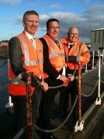 Councillor Steven Bayes, portfolio holder for economic regeneration and employment, Dan McGrail, Project Manager UK Offshore, Siemens Windpower and Matt Jukes, ABP Port Director Hull and Goole visit the site of the proposed Green Port Hull development.