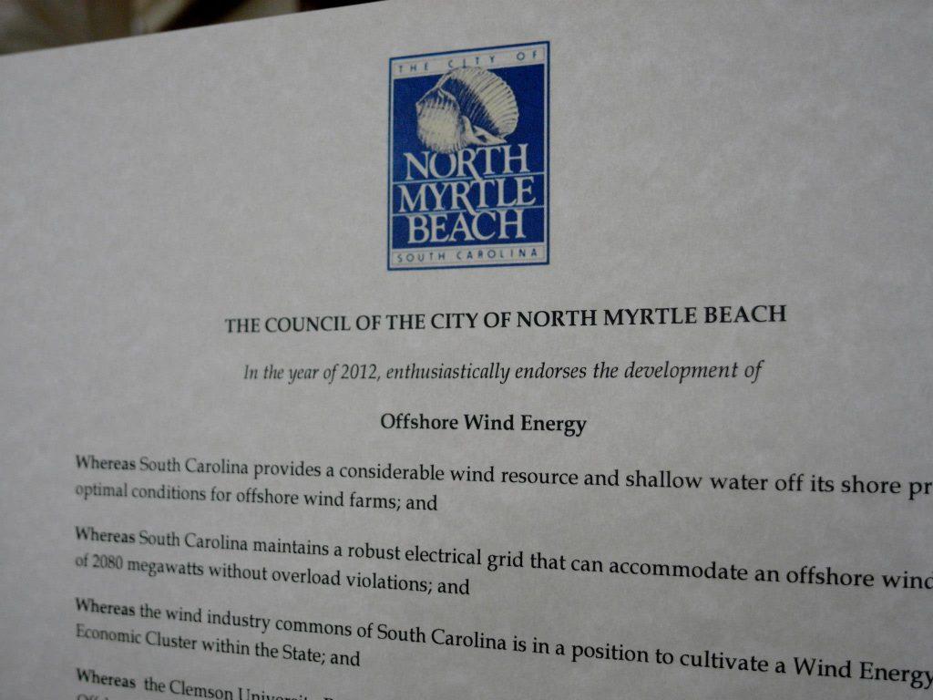 The BOEM announcement comes on the heels of the adoption of a resolution by the South Carolina Senate recognizing the value of wind-generated energy. This is a very important step toward the development of wind energy in state waters because it tells investors that the state is likely to craft laws and regulations sensitive to their needs, and encourage renewable investment. The resolution recognizes wind power as part of a multi-source energy strategy and North Myrtle Beach as a “Wind Empowered Economic Zone.”