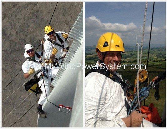 - Wind turbine blade cleaning via rope access or platform