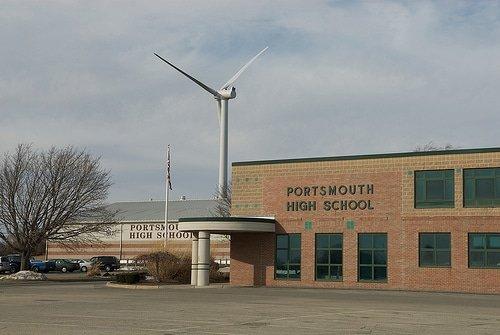 It seemed a great idea at the time- to give Portsmouth High School a green boost by having a wind turbine. The problem is that the wind turbine has been inactive since June 2012. The turbine is located behind Portsmouth high school’s tennis courts, and is very visible to motorists on Route 24. It’s been proposed that the turbine be used as a giant advertising hoarding instead of being fixed!