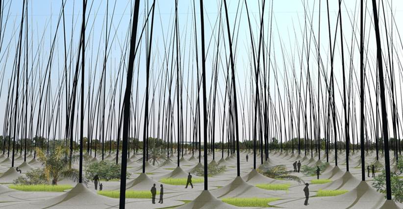 It’s planned that the top of each tall stalk has an LED lamp that glows when the wind is blowing more intensely during strong winds and not all when the air is still. The firm anticipates that the stalks will behave naturally, vibrating and fluttering in the air, and creating a visual spectacle.